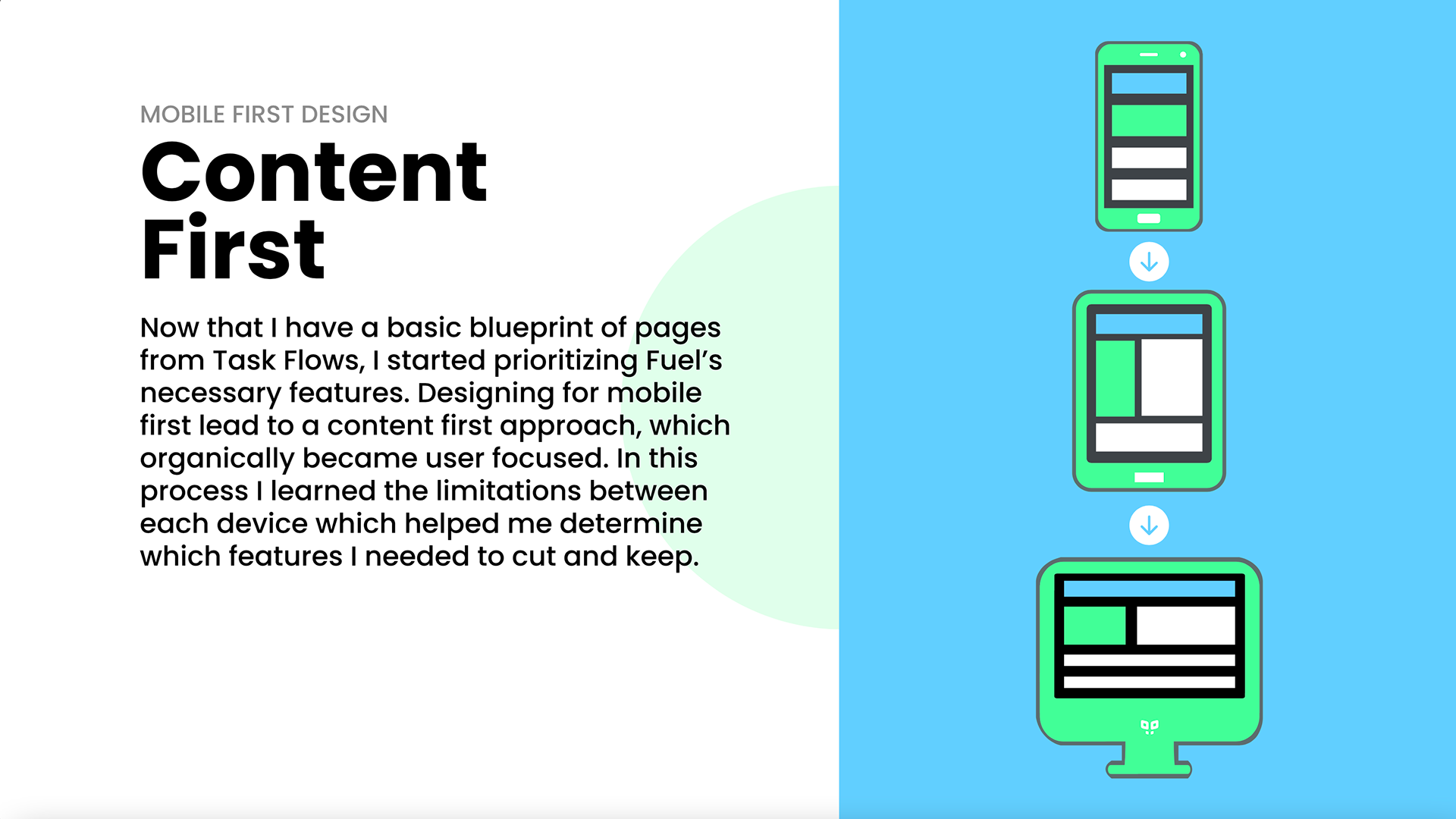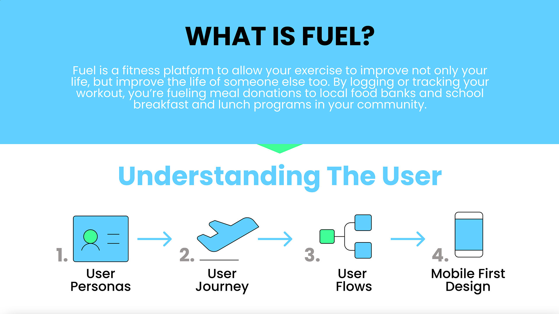 Presentation of user research done for the Fuel App. The portfolio includes analysis on User Personas, User Journeys, User Flows, and Mobile First Design.