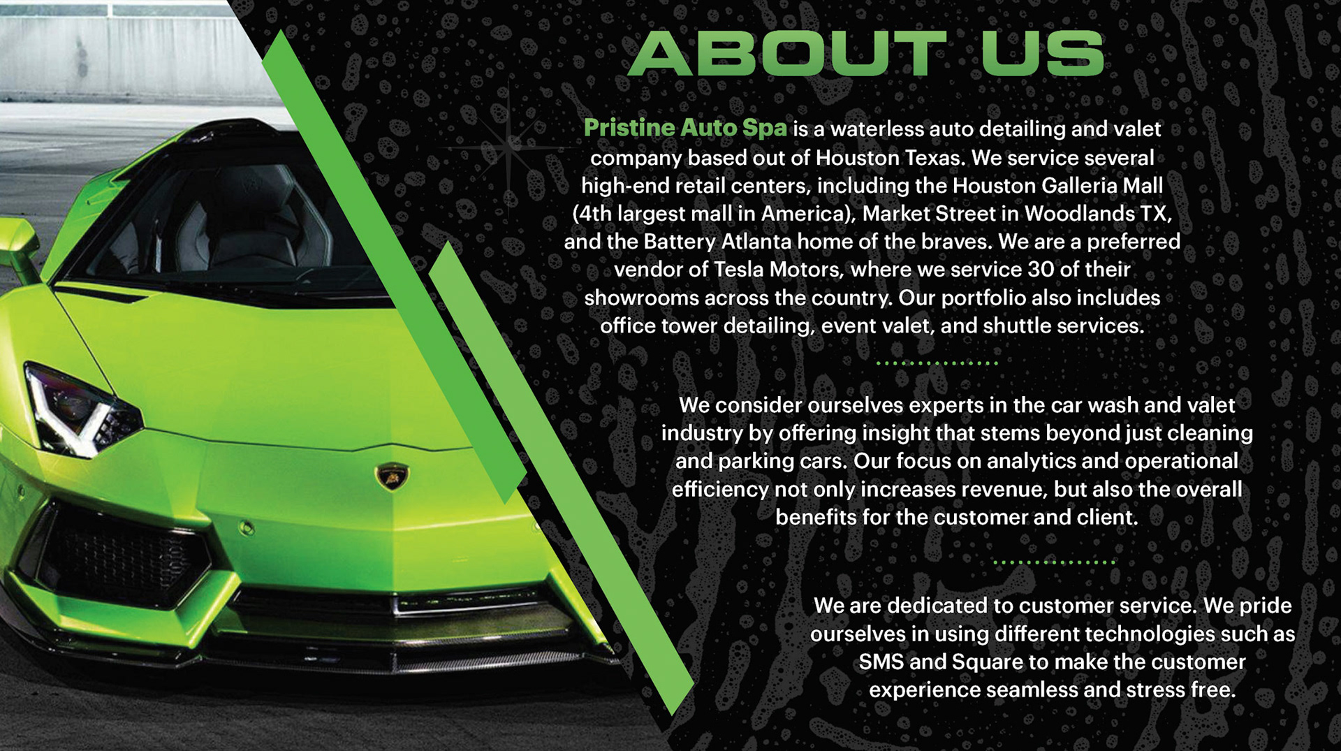 Here is a capabilities deck I did for Pristine Auto Spa in Atlanta GA. They needed a full redesign to pitch to new clients. Since this deck they have signed 4 new deals and opened 2 new car wash in other markets.
